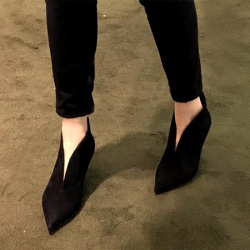 v口高跟鞋磨砂短靴女春秋2025新款百搭尖頭細中跟裸靴冬季馬丁靴
