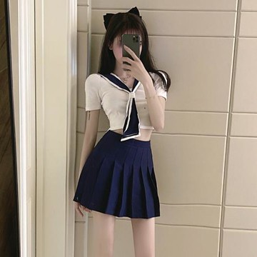 辣妹套裝裙女純欲收腰顯瘦短袖襯衫甜辣學院風JK制服百褶裙兩件套