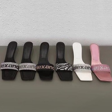 水鉆高跟拖鞋女2024夏季新款網紅方頭露趾性感一字帶細跟涼鞋