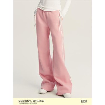 點我下載PUKI 粉色蝴蝶結線條休閑褲 春秋季美式氣質寬松闊腿顯瘦運動長褲