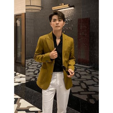 楊洋同款西裝外套男士韓版痞帥休閑秋冬季修身西服高級感英倫風潮