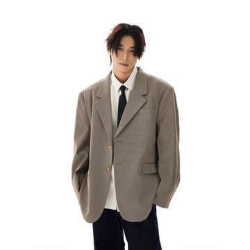 J LONE美式復古休閑千鳥格西裝男女潮牌寬松痞帥Cleanfit西服外套