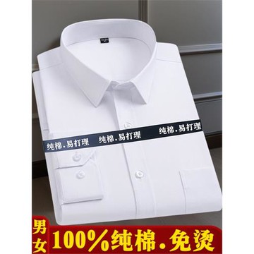 100%純棉男士長袖白色襯衫商務職業工裝全棉免燙寬松特大碼號襯衣