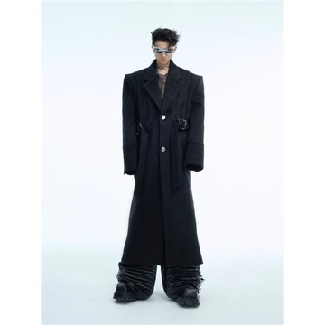 點我下載ArguE小眾解構金屬扣純色高級廓形墊肩毛呢大衣寬松綁帶設計風衣