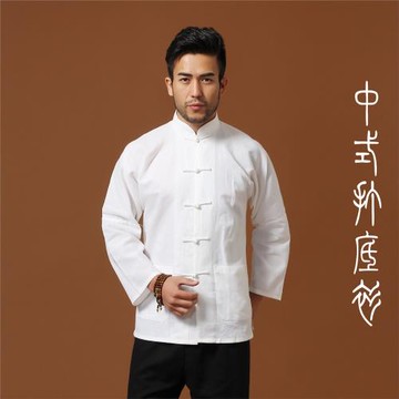 大碼白色棉麻長袖功夫衣中老年男士百搭中式老粗布爸爸唐裝打底衫