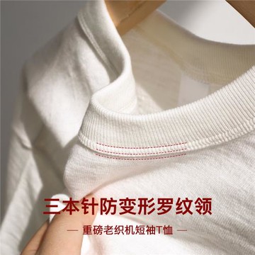 三針五線 老織機300g重磅香草白竹節棉圓領短袖T恤寬松復古品質款