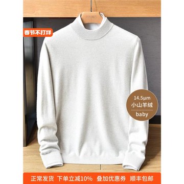 高端100%小山羊絨衫男士半高領Baby絨打底毛衣純色簡約保暖針織衫