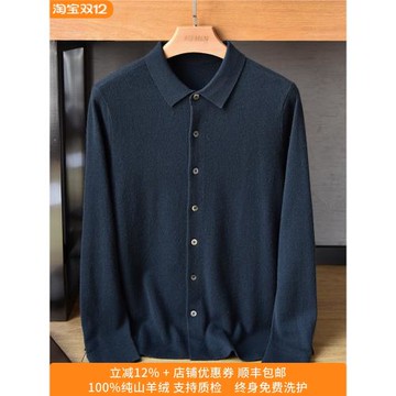 康賽妮100%純山羊絨開衫男POLO領毛衣外套秋冬季翻領系扣保暖長袖