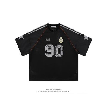 WH先生美式街頭t恤男女夏季橄欖球球衣短袖oversize寬松休閑上衣