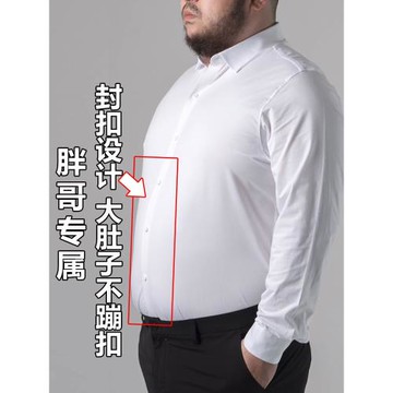 胖子商務大肚子不蹦扣襯衫大碼長袖加肥加大封閉門襟白色免燙襯衣