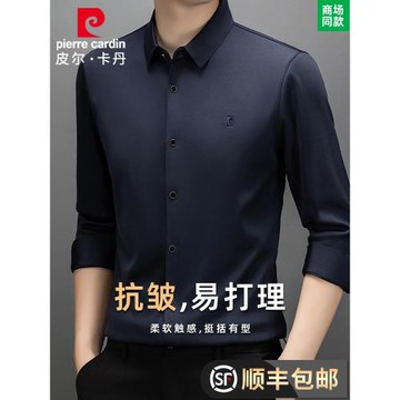 皮爾卡丹春秋桑蠶絲長袖襯衫男中年高端抗皺無痕爸爸婚宴婚禮襯衣