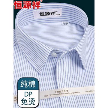 恒源祥DP免燙純棉襯衫男長袖中年商務條紋男士襯衣全棉白寸衫秋款