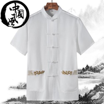 中老年男唐裝短袖中國風夏季古風男裝民族風古裝上衣