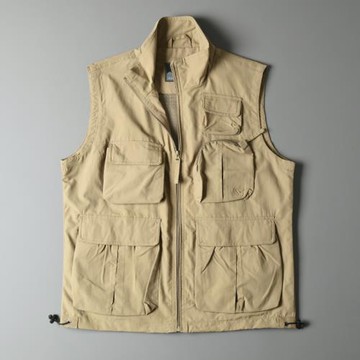 夏季釣魚工裝馬甲男登山外套多口袋戶外戰術背心外貿尾單男裝坎肩