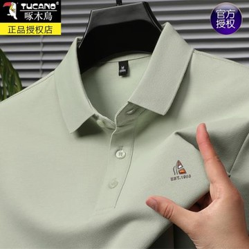 啄木鳥高端冰絲短袖男士Polo衫夏季新款t恤爸爸裝翻領中年2024薄