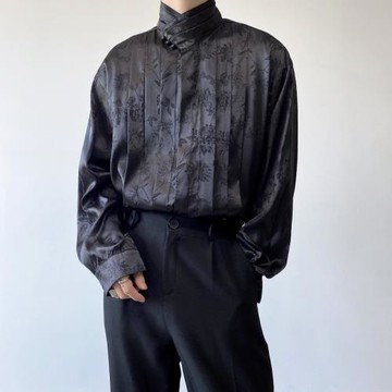 宮廷風復古新中式暗紋提花緞面高領長袖襯衫男歌手演出禮服高級感