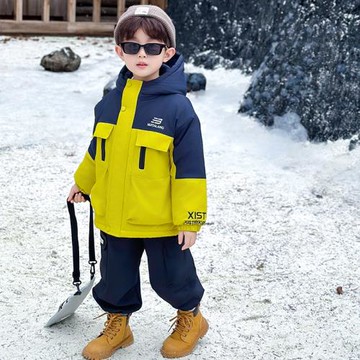 中小童拼色外套秋冬款棉服中小童休閑時髦沖鋒衣外套男孩二棉棉衣