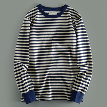 高克重!外貿大牌出口牛貨男士長袖條紋長袖體恤圓領大碼打底衫潮