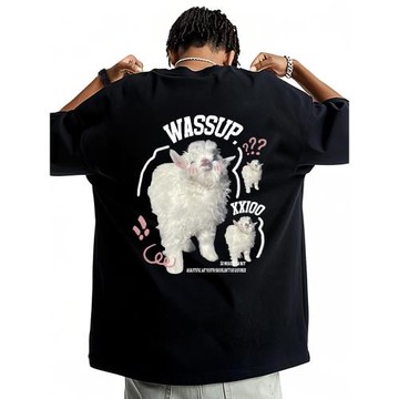 WASSUP短袖t恤男生夏季寬松重磅純棉設計感潮牌字母情侶體恤上衣