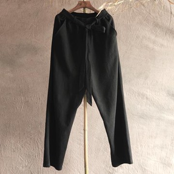 春夏棉麻男士休閑寬松長褲直筒褲中國風系帶禪修褲中腰褲闊腳褲