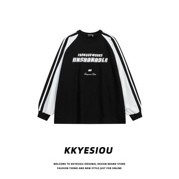 點我下載KKyesiou美式復古運動機能風長袖T恤男女oversize側條紋情侶衛衣