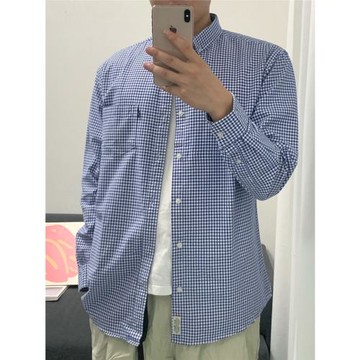 日單 秋新品男女情侶款日系復古牛津紡小格子襯衫長袖襯衣薄外套