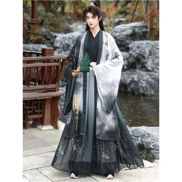 七七坊男士漢服全套華服春秋中國風兒童提花大氅直裾袍蔽膝秋河六