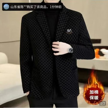 犇嵐品牌男裝新疆棉外套秋冬加絨加厚商務西服男士保暖西裝夾克潮