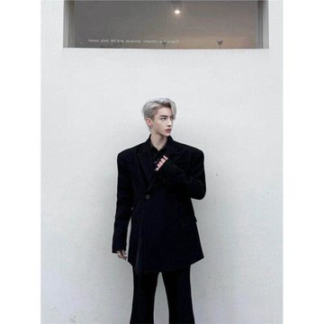 韓系ins輕熟鹽系西裝男藝術生酷帥風格穿搭藍色外套垂墜西服套裝
