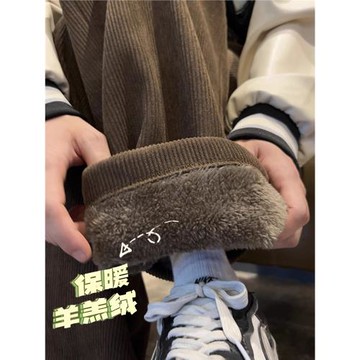 燈芯絨超厚羊羔絨褲子男秋冬青少年加絨加厚保暖寬松直筒休閑長褲