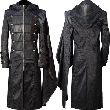 歐美哥特式披肩斗篷大衣男暗黑風朋克長款拼皮風衣雙排扣連帽外套