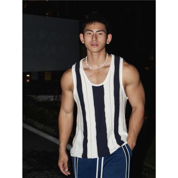 24ss夏季新款美式坑條豎條紋毛織休閑背心男彈力高級感時尚慵懶男