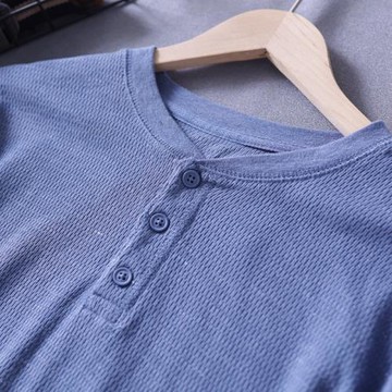 美式休閑有大碼!舒適華夫格秋冬男士個性亨利領長袖T恤打底衫 潮