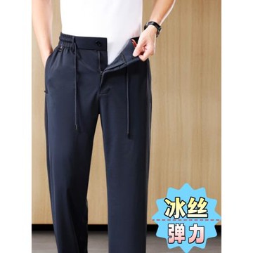 2026男士褲子夏季薄款高彈力冰絲褲速干透氣直筒百搭休閑褲男大碼