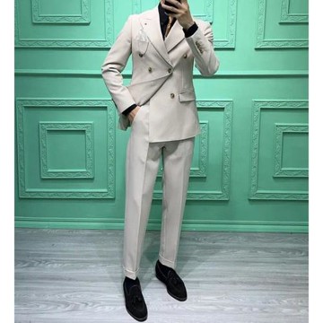 紳士范時尚意式復古男士商務休閑免燙通勤婚禮主持雙排扣西服套裝