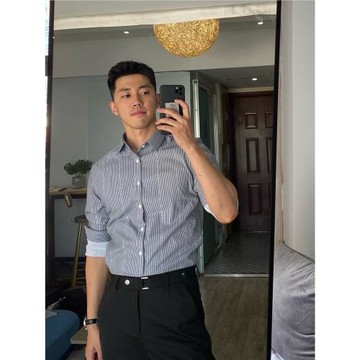 烏素mirror 202年春季新品英倫時尚ins男士修身印花條紋長袖襯衫