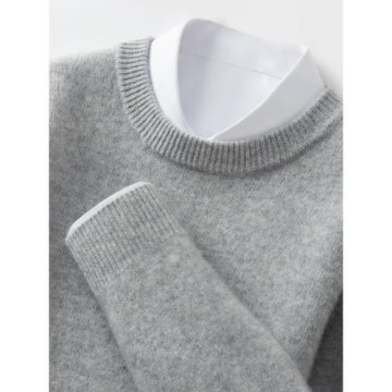 2024秋冬新款圓領山羊絨衫男親膚羊毛雙股加厚毛衣商務休閑打底衫