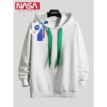 NASA聯名衛衣男連帽春季美式潮牌壓花設計純色上衣男生寬松套頭衫
