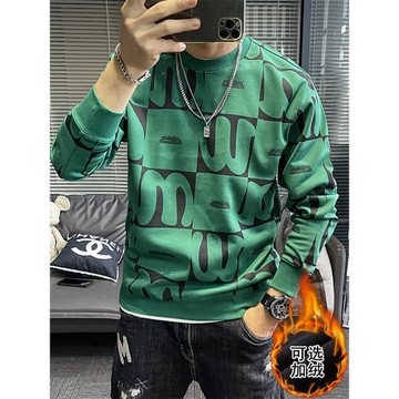 潮牌衛衣男2025春秋季潮流圓領百搭上衣韓版寬松字母印花長袖T恤