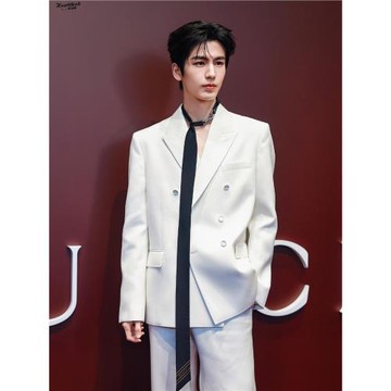楊洋同款秋季新款領口玫瑰刺繡白色西裝韓版男士寬松休閑西服上衣