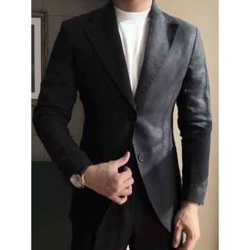 GH夏季亞麻輕薄半里布修身男士西裝時尚透氣百搭紳裝薄款西服外套