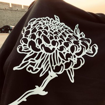 原創手繪復古真絲方巾花下眠