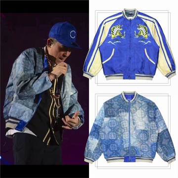津范陳冠希潮牌同款雙面情侶夾克男老虎印花復古廓形寬松休閑外套