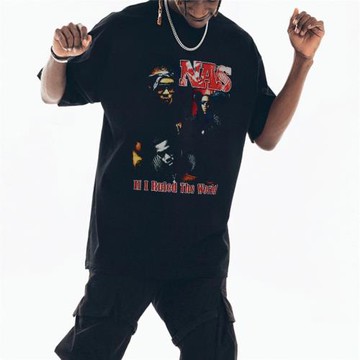 數碼直噴東岸硬核說唱納斯 nas Nasir印花T恤純棉寬松男女小領口
