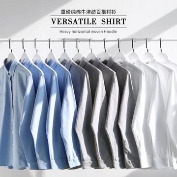 秋季男士長袖襯衫質感牛津紡襯衣 青年商務休閑純色質感上衣男士