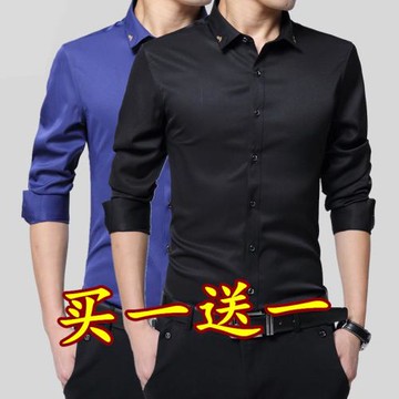 默寫秋季韓版英倫修身長袖襯衣男發型師襯衫男免燙抗皺襯衫男青年
