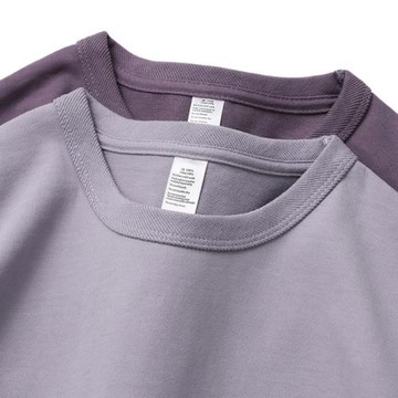 碳素磨毛面料!淡紫色重磅純棉圓領短袖t恤男女純色寬松潮流打底T