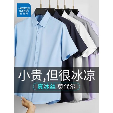真維斯莫代爾冰絲短袖襯衫男夏季薄款休閑襯衣長袖內搭商務正裝男