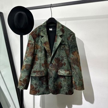 秋冬高級感輕奢風廓形復古印花寬松休閑西服流行痞帥輕奢風外套潮