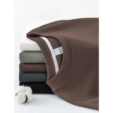 300g阿美咔嘰精梳棉重磅t恤男 圓領短袖打底衫基礎款潮牌一件代發